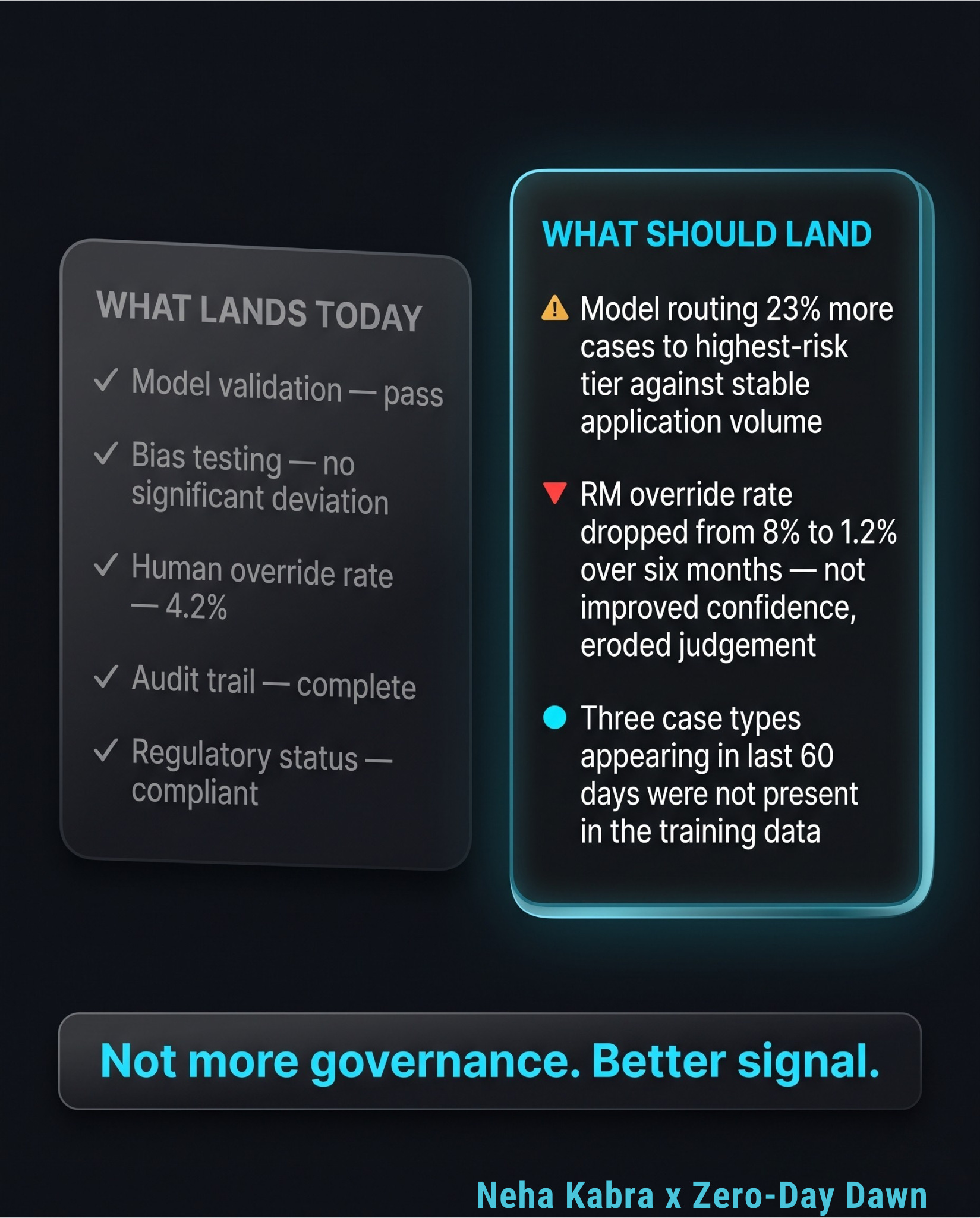 That is the shift. Not more governance. Better signal.