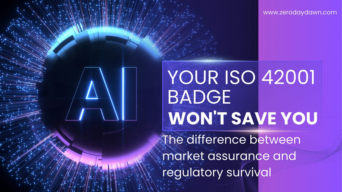 Your ISO 42001 certificate is a process badge. Not a regulatory shield.